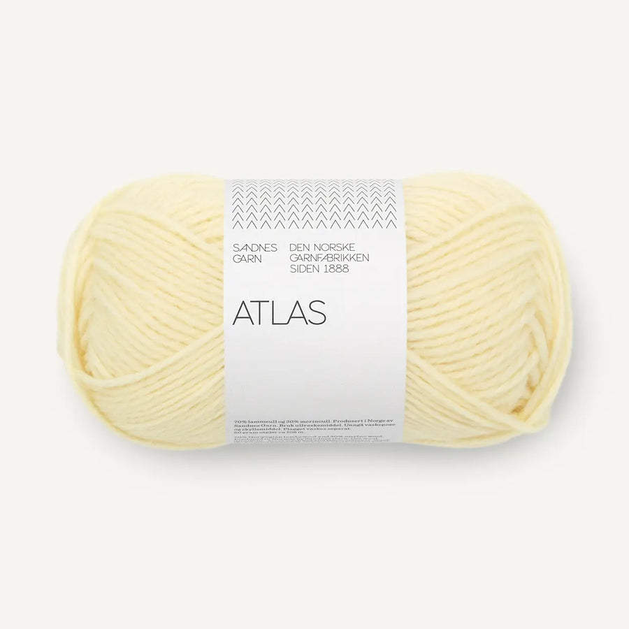 Atlas har en løbelængde på ca. 108 meter pr. 50 gram og strikkes på pind 4 mm med en strikkefasthed på 18 masker = 10 cm.