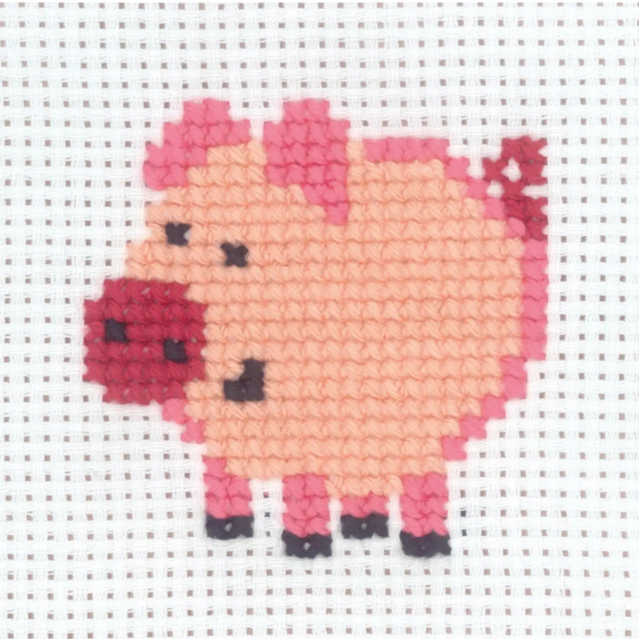 8 x 8 cm broderikit fra Permin i Aida stof. Motivet er enkelt, og egner sig rigtigt fint til børn, som gerne vil lære at brodere.