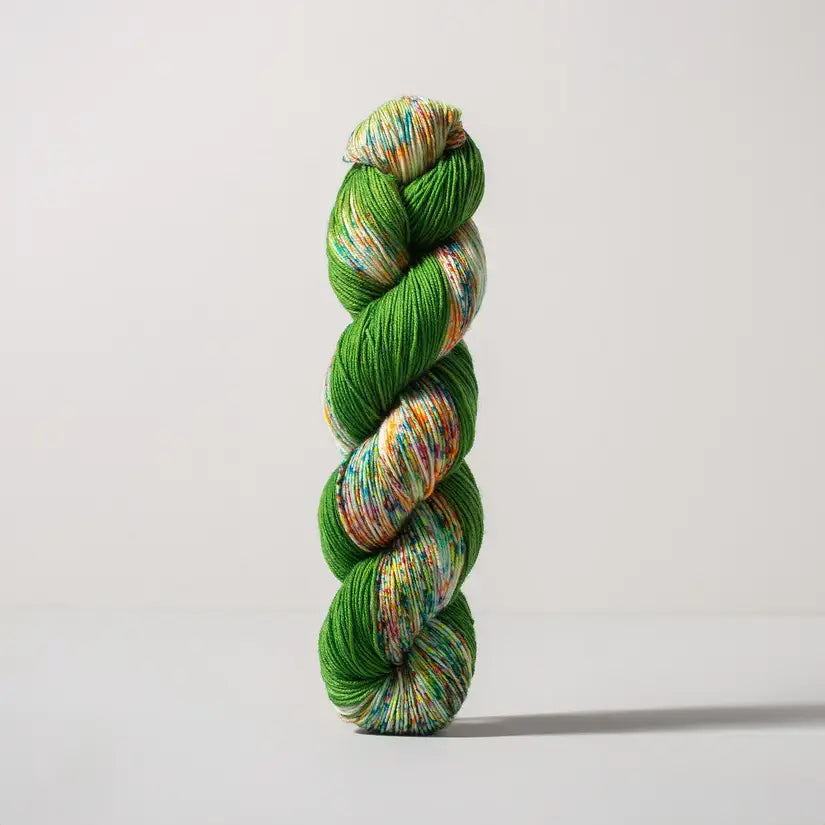 Carmen er et super spændende garn, hvor farverne er kombineret, så halvdelen er en solid helfarve og den anden halvdel er flerfarvet med masser af fint farvekrymmel/speckles. Garnet er håndfarvet i de smukkeste farver, og egner sig i øvrigt godt til "planned pooling". Da der er tale om håndfarvet garn, kan der være små nuanceforskelle.