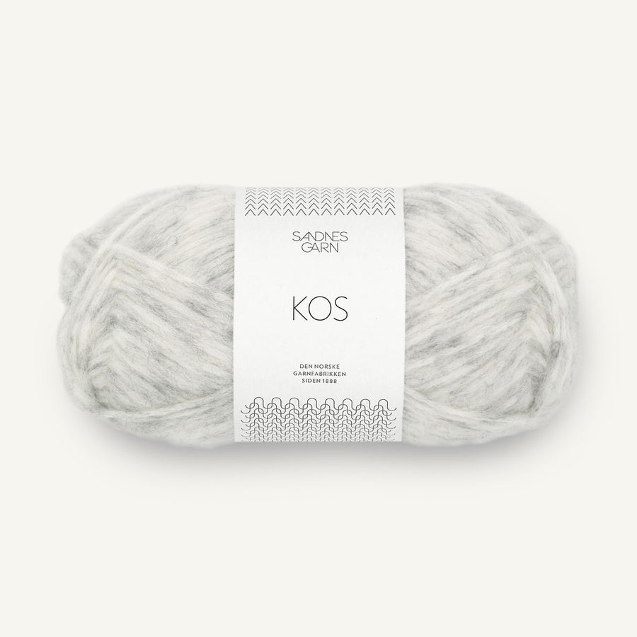 Kos er et blow-garn, som betyder at ulden/alpakkaen bliver blæst ind i et tyndt nylonrør. Det giver et let, blødt og luftigt garn. Garnet består af 62% alpaka, 9% uld og 29% nylon.