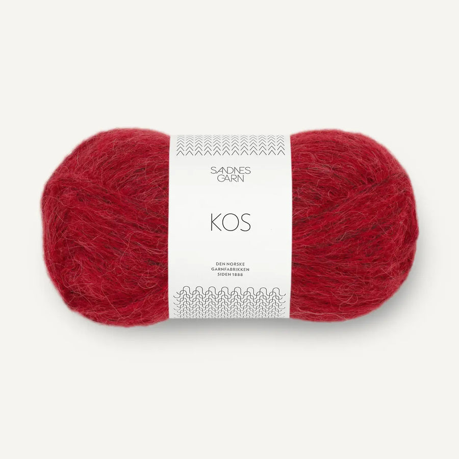 Kos er et blow-garn, som betyder at ulden/alpakkaen bliver blæst ind i et tyndt nylonrør. Det giver et let, blødt og luftigt garn. Garnet består af 62% alpaka, 9% uld og 29% nylon.