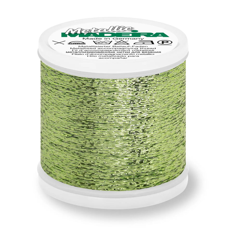 Metallic tråd fra Madeira er en ultra tynd tråd, der ikke påvirker strikkefastheden, men som kan strikkes eller hækles med som følgetråd i dit projekt for at give en fin glimmereffekt.
