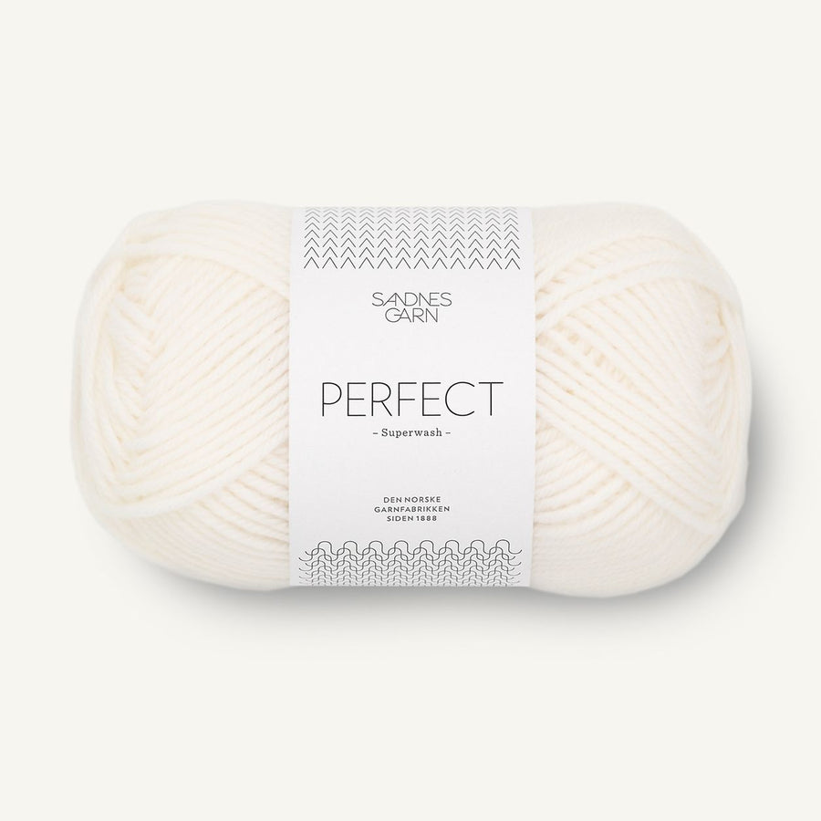 Perfect er et blødt, slidstærkt garn som er forstærket med nylon. Det egner sig derfor godt til sokker og tøfler, men fordi det er så blødt kan du også bruge det til vanter, huer og andet brugstøj som skal tåle hårdere brug. Du finder opskrift på strømper på indersiden af banderolen. Garnet er superwash-behandlet så det tåler at blive vasket hyppigt i maskine.