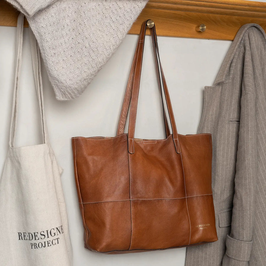 PROJECT 19 fra RE:DESIGNED er en flot, rummelig shopper i det smukkeste, blødeste læder. Og der er masser af plads til både strikketøj og strikkegrej.