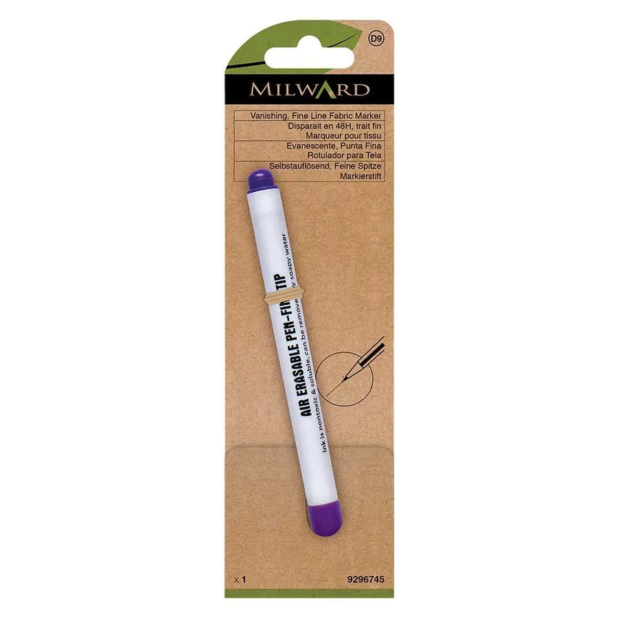 Denne selvopløselige markingspen fra Milward er et uundværligt tilbehør til syning, quiltning og broderi. Du kan bruge pennen til at spore mønsterlinjer, markere knaphuller, lommer og læg og tegne quiltning og broderidesign på stoffet. Pennen er meget fint og tegner meget præcise linjer i en lilla farve.