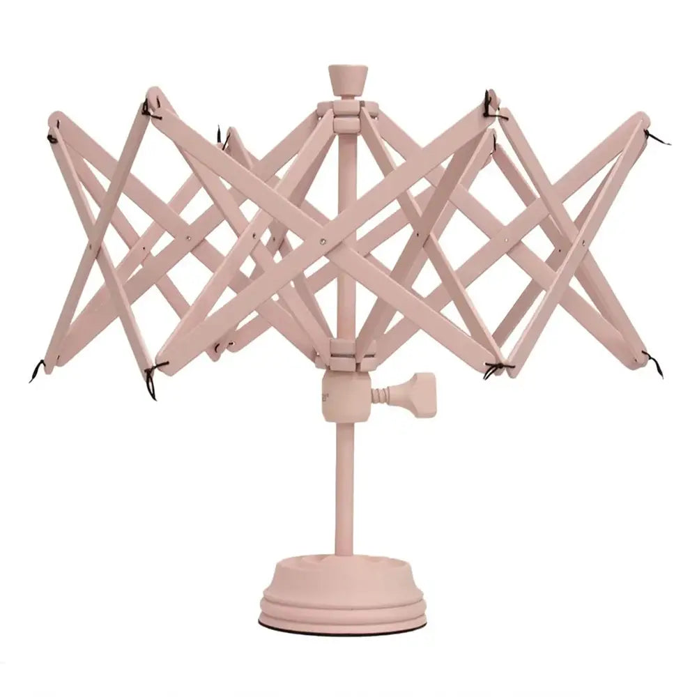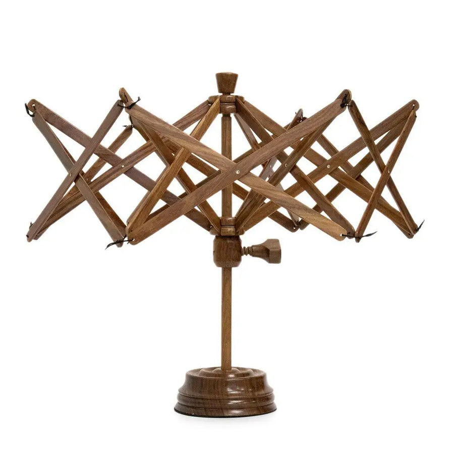 Når du skal vinde garn op fra fed, er en garnvinde et uundværligt stykke værktøj. Læg garnet rundt om "paraplyen", fastgør den til den ønskede bredde med skruen, og du kan begynde at spinde. Opvinding af garn i fed fungerer bedst i kombination med et krydsnøgleapparat, som du også kan finde på vores webshop.