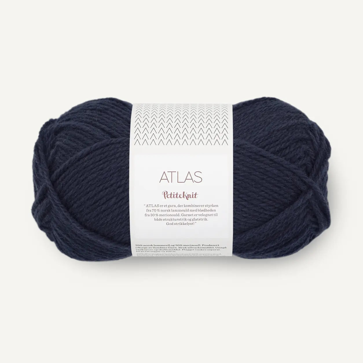Atlas har en løbelængde på ca. 108 meter pr. 50 gram og strikkes på pind 4 mm med en strikkefasthed på 18 masker = 10 cm.